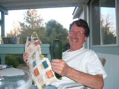 A big 1 1/2 lb homegrown dark green zucchini, freshly plucked from my garden that very afternoon. He loved it! I told him that I had to share some of the prolific zucchini and this was a good opportunity to do it. I am sure he double checked to see if he had locked his car doors or not. I gave Bob a zucchini "party favor" to take home and enjoy too.